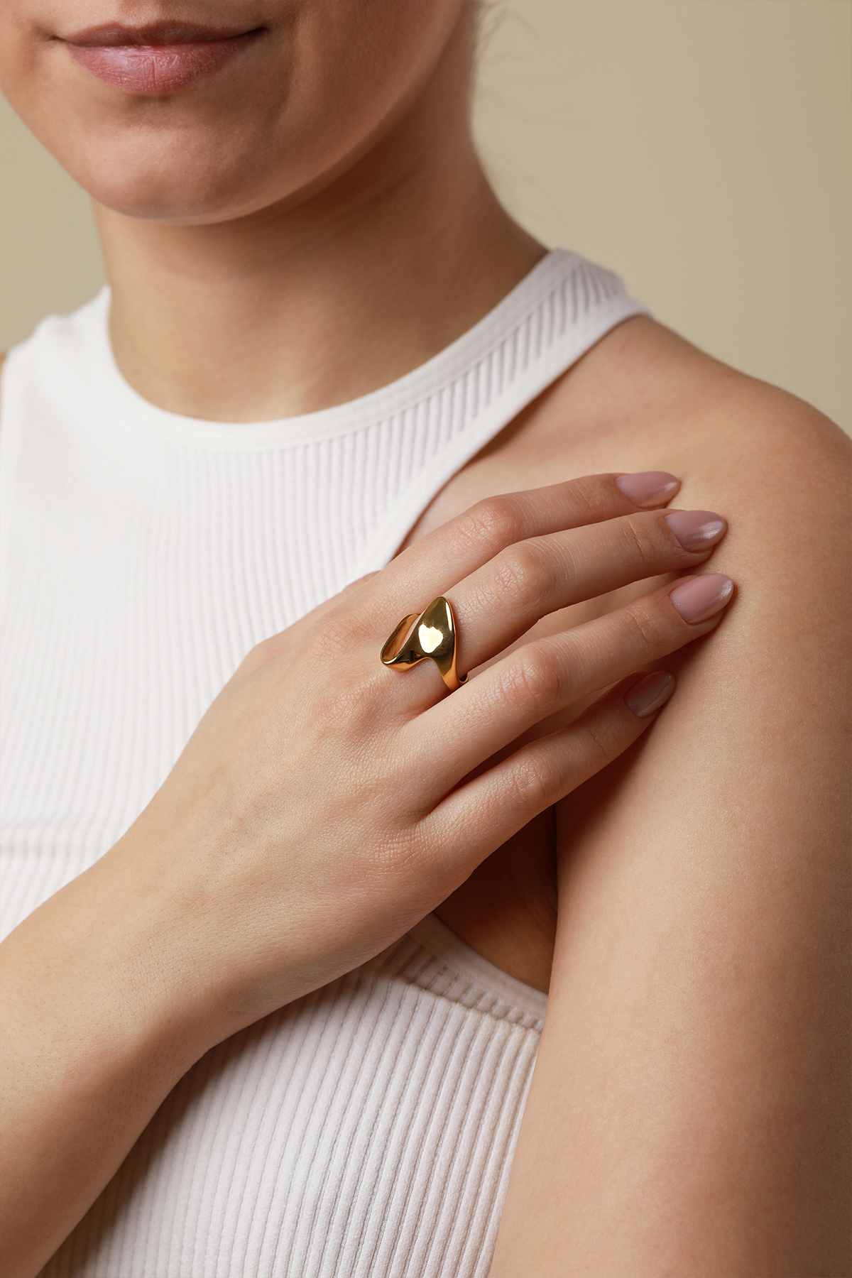 Inel din Stainless Steel Fashion placat cu aur galben de 18K. Inelul este disponibil in doua marimi .