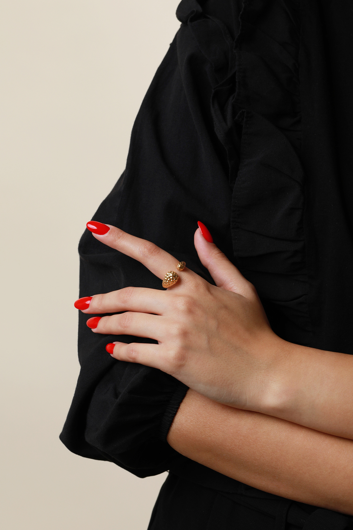 Inel din Stainless Steel Marizzo Asymmetric Gold placat cu aur galben de 18k, placare standard de 0.6 microni. Circumferinta inelului este de 54 mm si nu se poate ajusta.