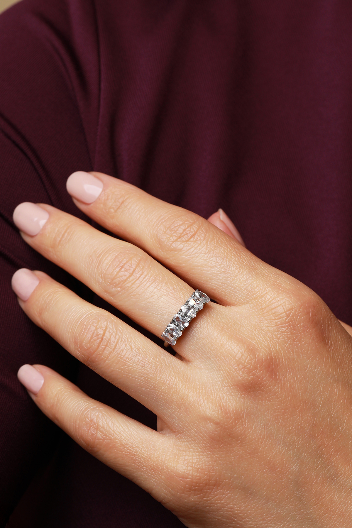 Inel din Stainless Steel Marizzo Half Oval Stones disponibil in doua marimi. Inelul este prevazut cu pietre zirconia ovale.