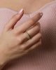 Inel din stainless steel Lacebplacat cu aur galben de 18K. Inelul este prevazut cu pietre zirconia si este disponibil in 2 marimi.