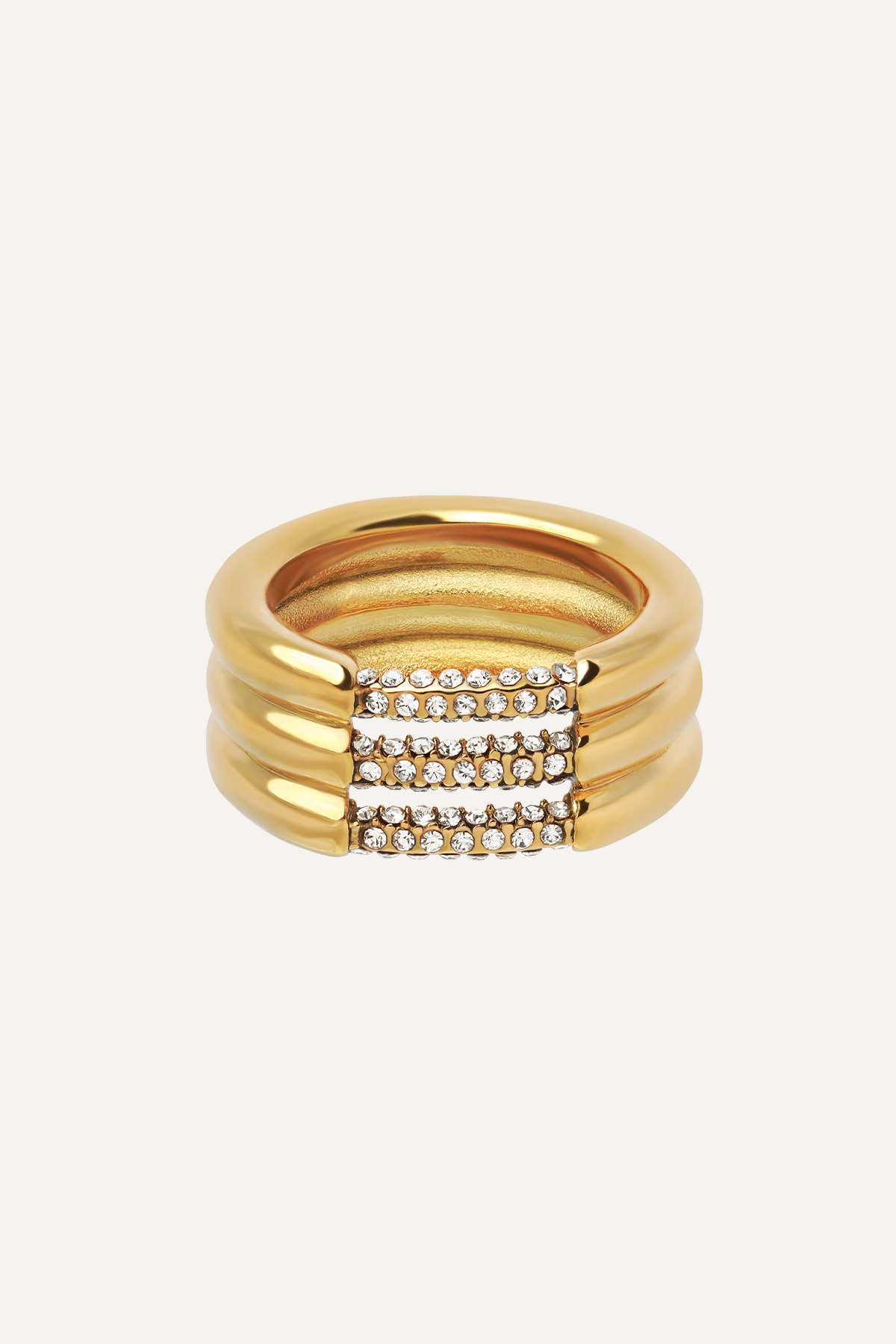 Inel din Stainless Steel Marizzo Zaza placat cu aur galben de 18K. Inelul are latimea de 9 mm si este prevazut cu pietre zirconia.