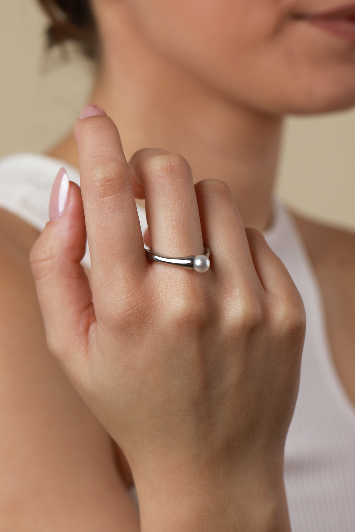 Inel din Stainless Steel One Pearl. Inelul are forma neregulata si este prevazut cu o perla artificiala.